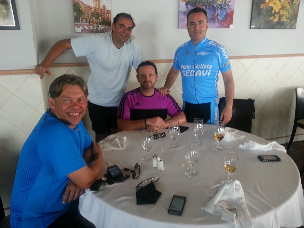 Esta vez fue espectacular. Tuvimos mala suerte porque el sitio donde queríamos almorzar estaba cerrado, así que tuvimos que seguir pedaleando buscando otro sitio. Pero Paco G nos dijo que un amigo suyo tiene un restaurante en Nazaret. Nos esforzamos por llegar y lo conseguimos.