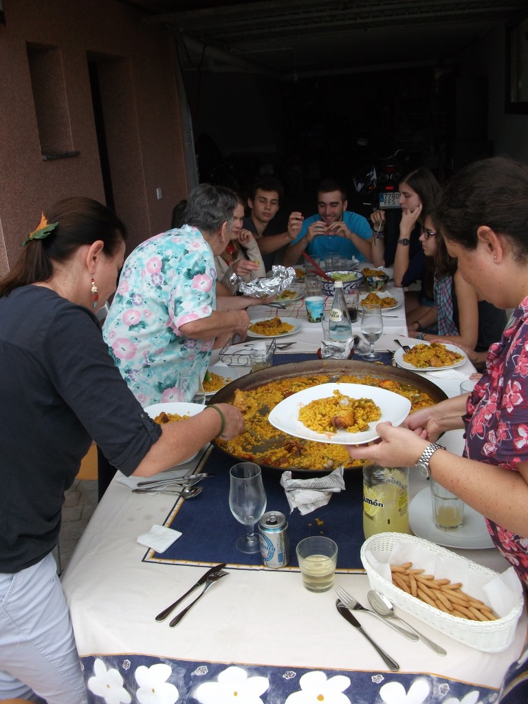 … y llega la paella. Nótese que, aun siendo octubre todavía comemos fuera, aunque ya un poquito más resguardados, jeje