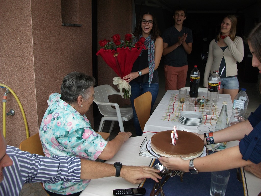 Aunque como más contenta está la Paca es aquí con sus niet@s. Atención a la infiltrada…ya es totalmente de la familia y acaba de llegar!