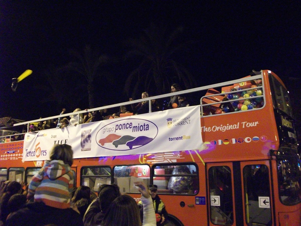 Pues siguiendo la tradición, nos vamos a ver la cabalgata de los Reyes Magos. Me parece recordar que Carlos estaba durmiendo y Javier ni an siquiera estabe en Torrent, por lo que nos fuimos Maricarmen y yo. Nos acompañaron Ann y Olivia.
